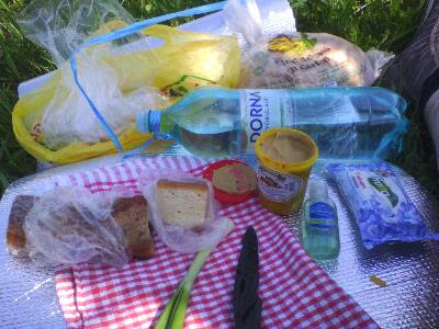 18:30 De pofta: slanina la ţăcălie ! Tocmai s-a-ntamplat. Abia de curand am reusit sa incarc bateria. Am parcurs inca 60 de km pana acum , dar am stat vreo ora la o biserica pe drum si vreo doua la terasa cu niste baieti din Pogoanele, la vreo 45 km de Buzau. Si a batut vantul din lateral si a inceput sa mi se descentreze cicleta, de merge numai in cateva viteze. Partea dorsala resimte saua ingusta si rucsacul de 15 kile a inceput sa cam fie dureros. Noroc ca uit de rucsac cu chestiunea cu saua. Cam asta pe scurt. Incerc sa mai pedalez cat pot in seara asta.